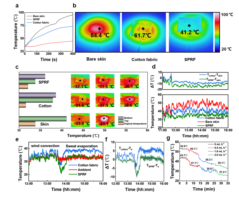图5.多级梯度结构静电纺丝织物的协同热管理性能