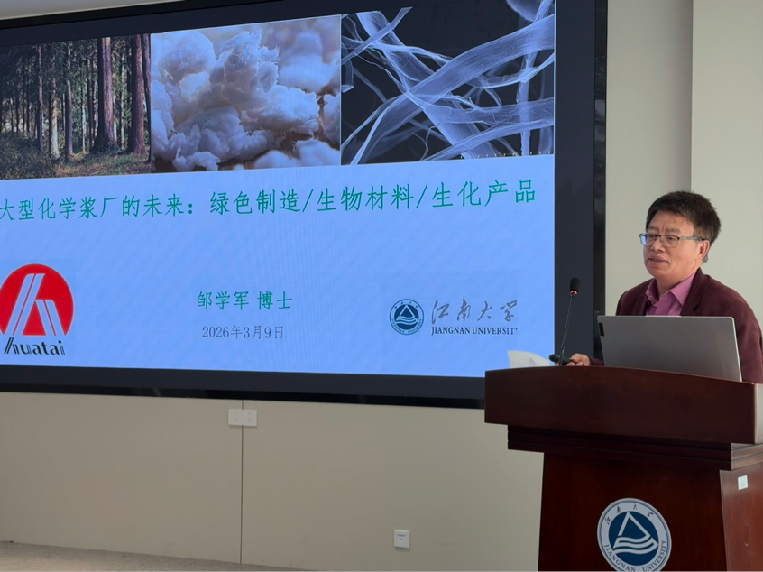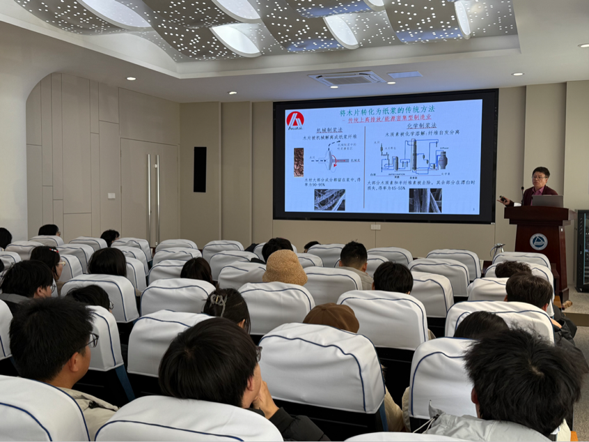 短纤维功能材料研究室邀请了邹学军博士莅临交流,并作了主题为“大型化学浆厂的未来——绿色制造/生物材料/生化产品”的学术报告,邹博士围绕化学浆厂行业发展、绿色转型路径展开深度解析,同时结合个人成长、家庭经历分享人生感悟,为在场师生带来专业知识与人生规划的双重启迪。