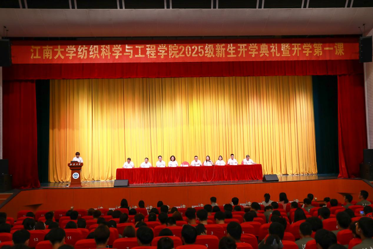 党委书记张菁燕,院长付少海,纺织工程系棉纺专业1980级校友、无锡一棉纺织集团有限公司原党委书记、董事长周晔珺,党委副书记、副院长杨莉勤,副院长马丕波、张丽平、刘庆生,纺织工程系主任周建,轻化工程系主任殷允杰,实验室主任晋阳,系副主任,2025级新生班主任、副班主任、辅导员以及2025级本硕博新生出席活动。典礼由杨莉勤主持。