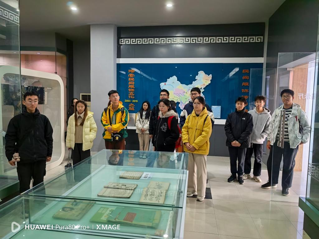 服装传习馆。馆内陈列的纺织历史文物、前沿科研成果与特色教学展品,让川通学子们沉浸式感受了学院深厚的学术底蕴与行业影响力。