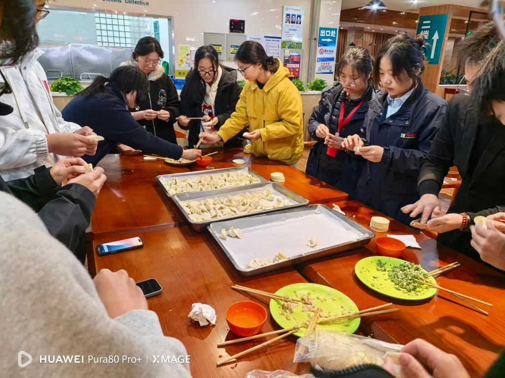 活动最后,师生们来到二食堂围坐在一起包饺子,动作娴熟者主动传授技巧,手法生疏者虚心请教,不同地域的饮食文化在饺子皮上碰撞融合。欢声笑语中,陌生感逐渐消散,归属感悄然滋生,一碗碗热气腾腾的饺子,不仅暖了胃,更拉近了师生距离、凝聚了川通学子的向心力。