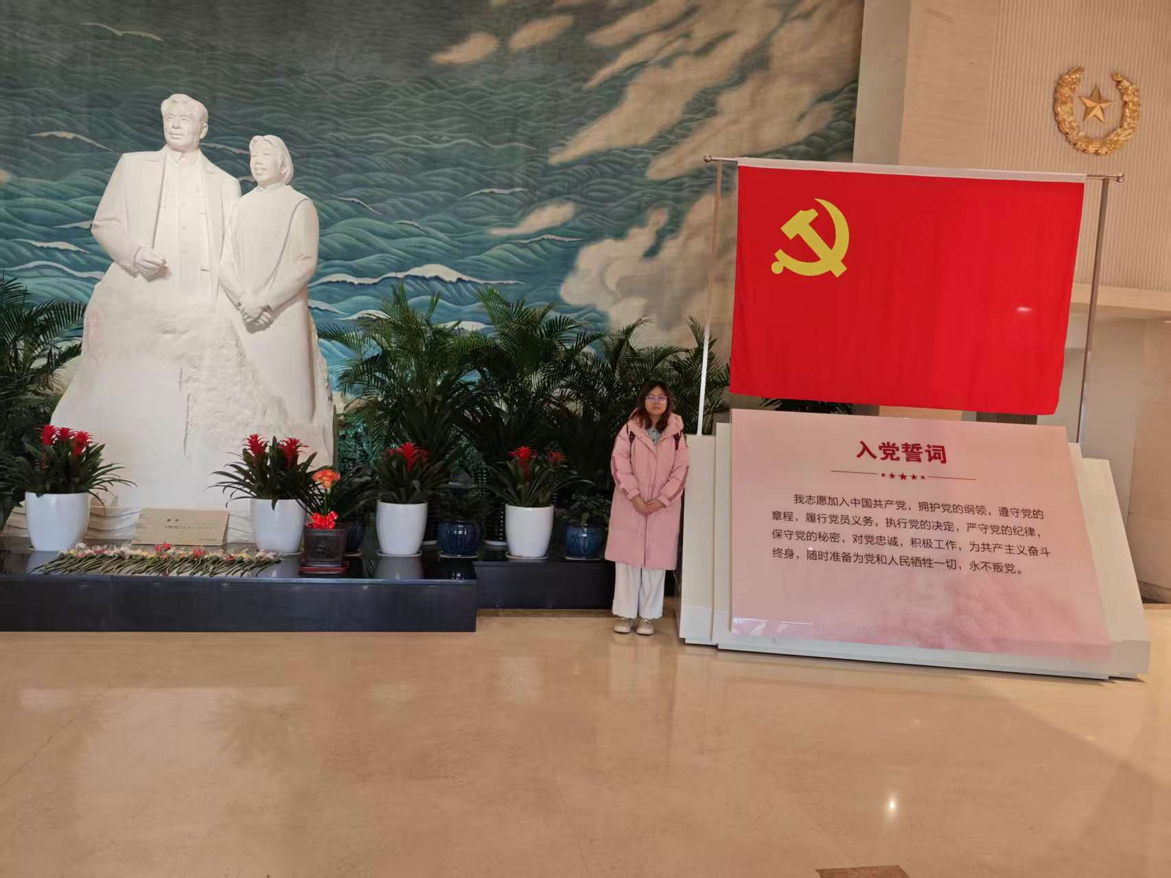 刘颖颖同学来到家乡甘肃省靖远县红军渡河战役纪念馆。馆内的历史照片与珍贵文物,再现了红军强渡黄河的壮举和当地民众抗日救亡的热血历史。她从先辈艰苦守家的故事中领悟到,红色基因蕴含的不畏艰难、勇于奉献,与纺织人“经天纬地、精益求精”的精神一脉相承。作为纺织学子,她深知革命年代纺织工人的奉献,决心用科技赋能纺织产业,将精神力量转化为学习动力,争做兼具家国情怀与专业素养的新时代纺织人。