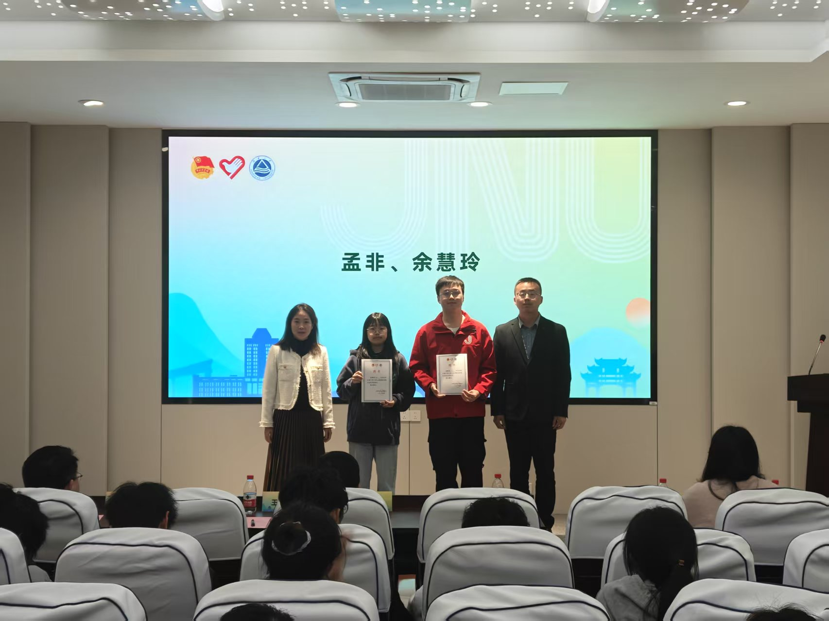 第26届研究生支教团志愿者孟非、乡村振兴志愿者余慧玲分别结合具体岗位分享了自己的志愿服务经历。他们深耕乡村,用个人行动诠释青年担当,更传递出“奉献、友爱、互助、进步”的志愿精神,激励着更多江南学子投身志愿服务,奔赴基层一线,用青春力量书写时代答卷。